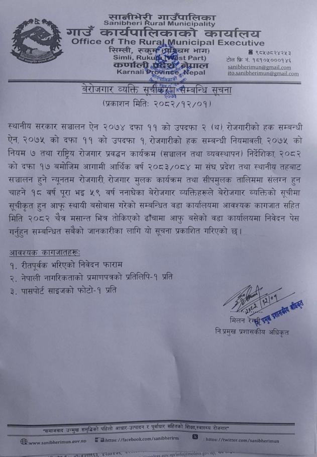 » बेरोजगार व्यक्ति सूचिकृत हुने सम्बन्धमा ।