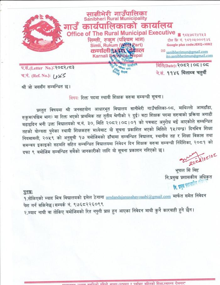 सानीभेरी गाउँपालिका गाउँ कार्यपालिका कार्यालय सिम्ली, रुकुम (पश्चिम भाग)