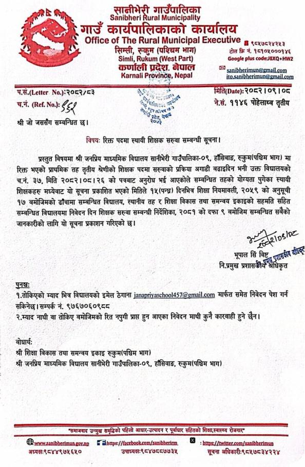 » रिक्त पदमा शिक्षक सरुवा सम्बन्धमा ।