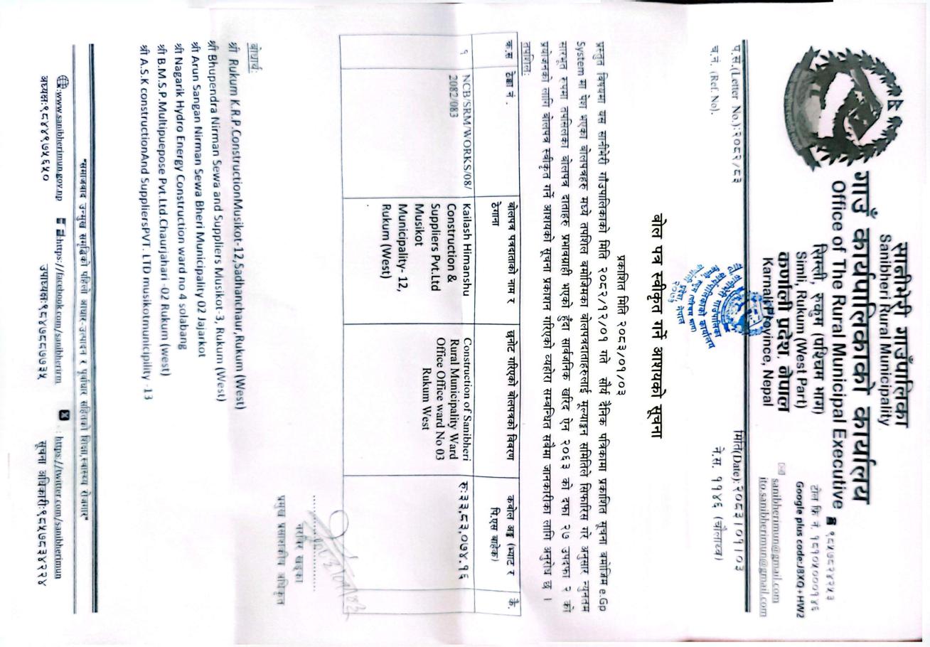 बोलपत्र स्वीकृत गर्ने आशयको सूचना(ncb/srm/works/01 and ncb/srm/works/-2)