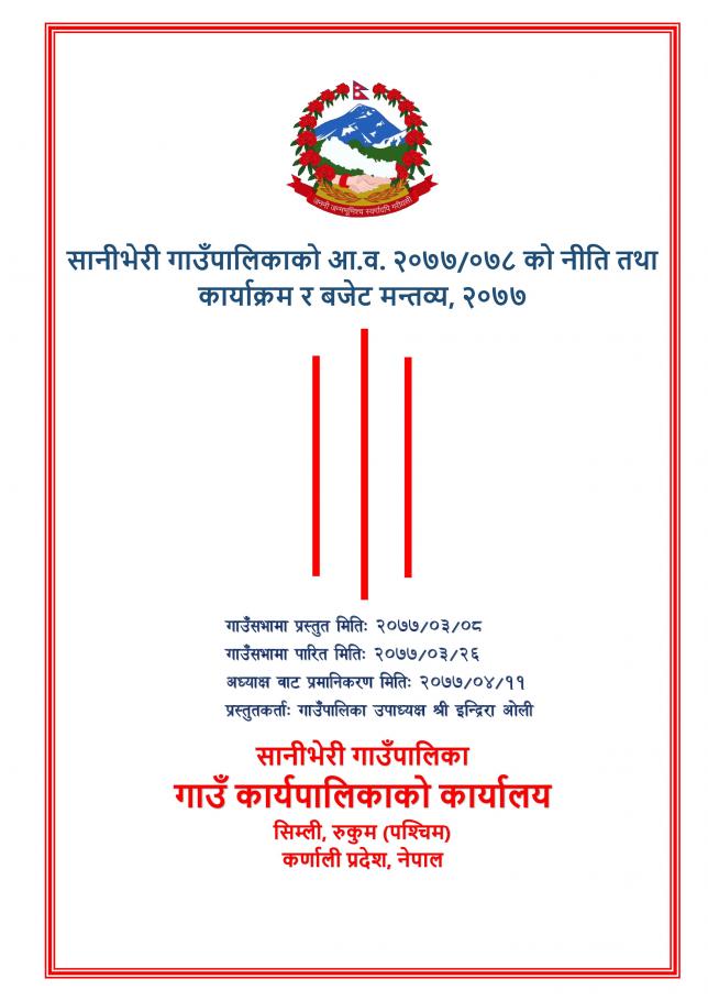 सानीभेरी गाउँपालिकाको आ.व. २०७७/०७८ को नीति तथा कार्याक्रम र बजेट मन्तव्य,२०७७