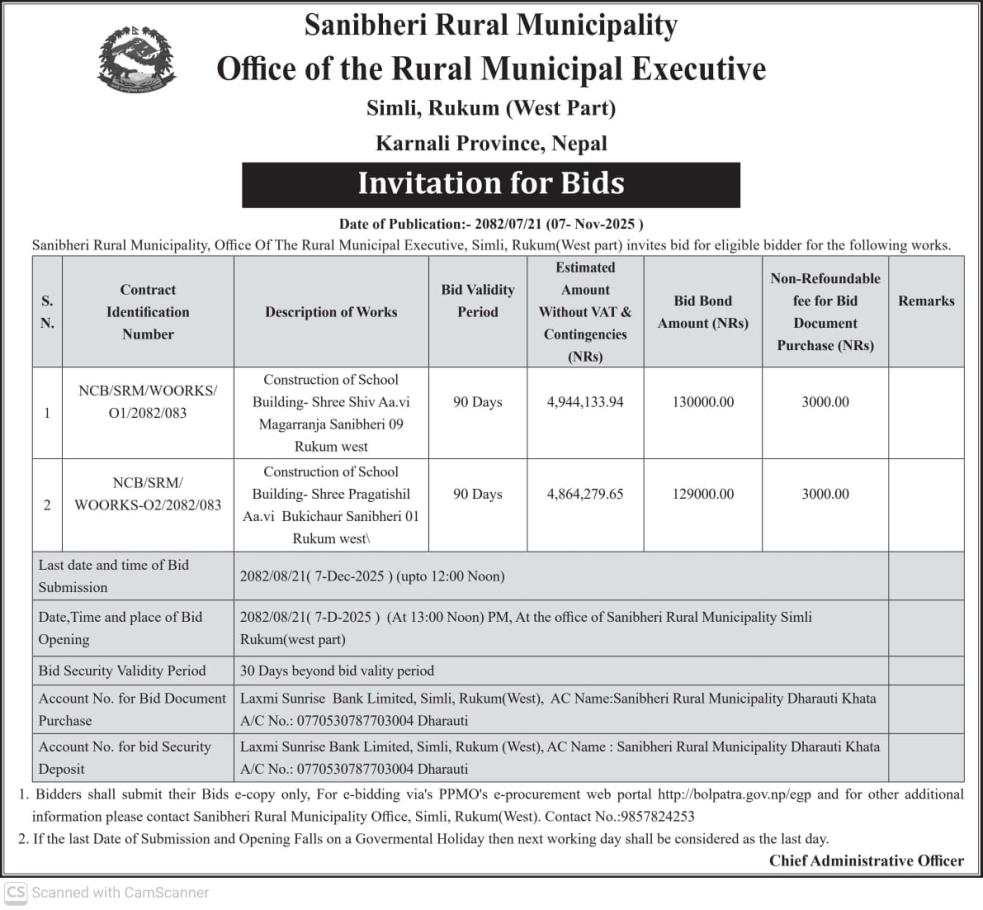 बोलपत्र स्वीकृत गर्ने आशयको सूचना(ncb/srm/works/01 and ncb/srm/works/-2)