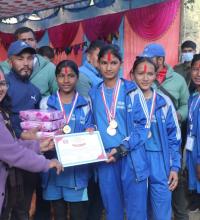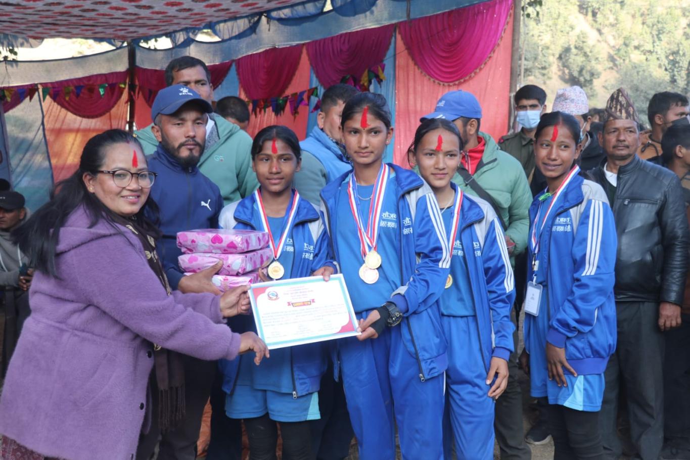 राष्ट्रपति रनिङ शिल्ड २०८० विजेता लाई पुरस्कार वितरण गर्दै गाउँपालिका उपाध्यक्ष